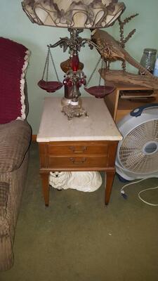Early 1900 marble tables. Coffee table,two end tables and plant stand. All tables have small casters...