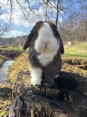Meet Charlie! Charlie is a chocolate VM Holland Lop buck with stunning blue eyes. He is 1 year and ...