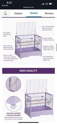 Gorgeous lavender bird cage Used for a couple months but no longer needed as I switched to a cage ...