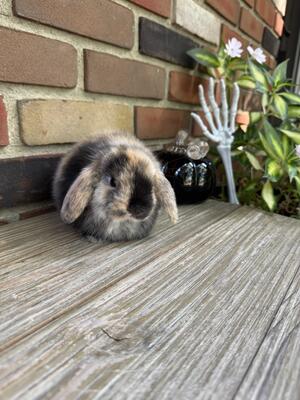 Harlequin Holland Lop doe now open for deposit and ready for her forever home on 10/10/25. Youth rai...
