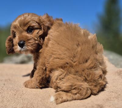 Two female red & white Cavapoos & 1 male red. They will be ready in two wks and come with shots ,wor...