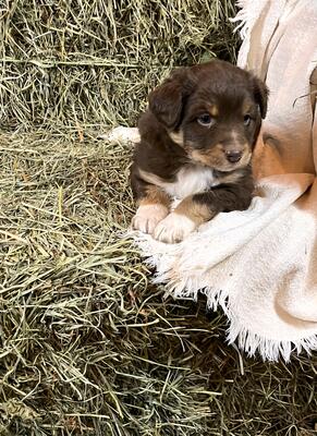 A gorgeous litter of red mini aussies, raised on a small dairy farm. Mom is a beautiful red tri lady...