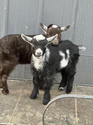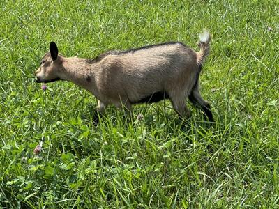 Nigerian Dwarf Wether DOB 02/24/2025 Dye Twin Acres Brian, Brown with some black Closed clean...