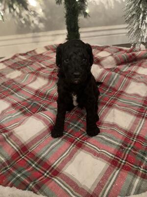 F2B black abstract goldendoodle boy. Ready to go home December 22 🎄...