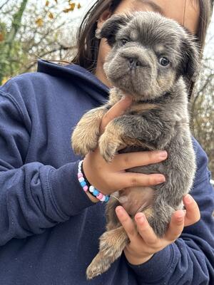 Ready now! Male blue tricolor fluffy big rope carrying testable chocolate and cream AKC registere...