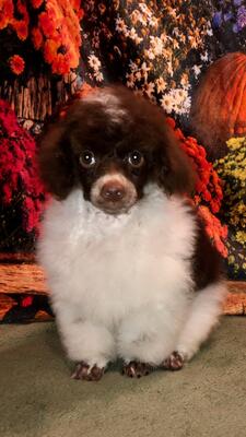 Ratchet - chocolate tricolor fluffy & pied carrier $1000 stud fee or 2nd pick pup back 22 lbs 9 i...