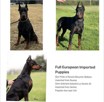Full imported European litter Sire Barymar Balboa from the pride of Russia line from Russia. Dam...