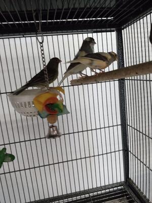 2 beautiful pied canaries, 3 beautiful yellow canaries, and 3 beautiful brown and white canaries all...