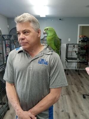 Young 8 month old Yellow Nape Amazon Parrot available for sale for $3000.00. He is Bi-Lingual speak...