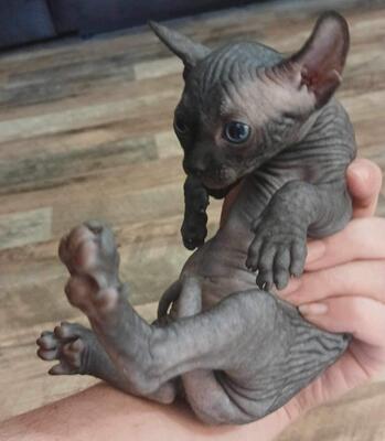 Sphynx Kittens Black Elf Boy text 234 706-4485 TICA Titled Hairless Kitten Male Sphynx