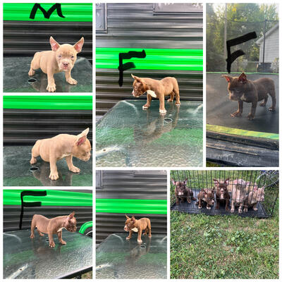 I have four bullies available 8weeks old shots and dewormed papers in hand 2000/1500$...