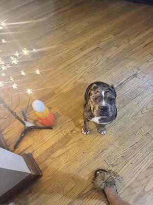 71/2 old Merle and tri bully. He’s housebroken mild is house broken mild tempered and follows inst...
