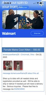 This is a scam! Contacted “Marcus Williams” about one of the kittens. Doesn’t really have them...