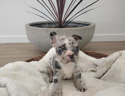 Meet Banjo this little boy is absolutely adorable with his unique facial markings and merle color. H...