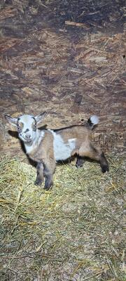 For sale 8 week old tri colored pygmy billy polled tame and playful would make great herd sire or pe...