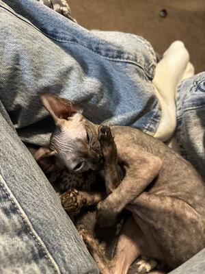 Female Devon Rex / Sphynx hybrid she has been vaccinated, dewormed and had a health examination read...