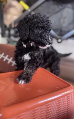 Standard Goldendoodle ~ Parti Merle Tuxedo