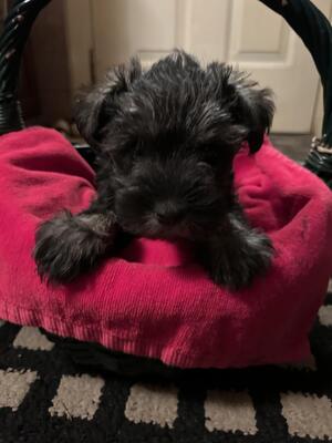 AKC Miniature Schnauzer Puppy, shots, wormed, raised in the home with lots of love 937-465-5588 cell...