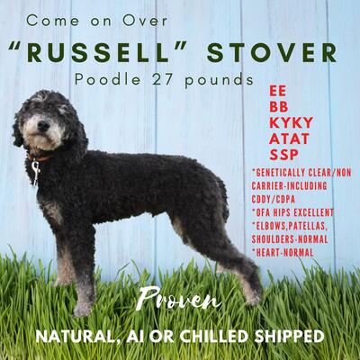 Come On Over Russell Stover is a 26 pound poodle who carries for parti. He has it all.perfect genet...