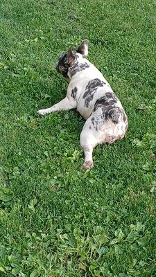 French bulldog male 8 weeks old fluffy big rope Merle both blue eyes ready to go located in wauseon...