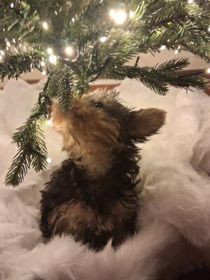 Christmas time Yorkshire Terriers.. 2 F Babies with Tails docked. Will come home with Portable Play ...