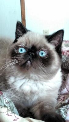 Gingersnap is a beautiful seal point tabby. He has blue eyes, tiger-stripes on his legs and tail. Hi...