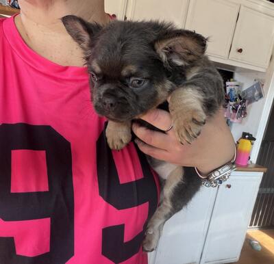 1 female French bulldog puppy left, she is a fluffy dark blue tan point $3500 Prineville Oregon re...