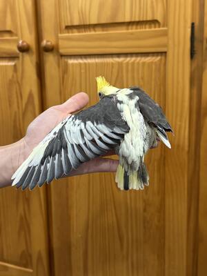 Baby cockatiel was born November 16 2025. Such a sweet little baby. Not fully weaned yet. Still bein...