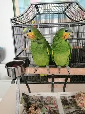 Amazon parrots super tame babies. Sisters hatched June 24th this year. They have DNA and come with ...