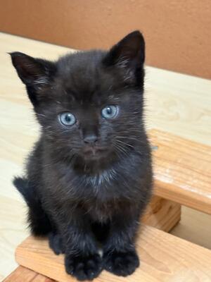 All black 6 week old kittens. Just weaned, using litter box. I think one is a female, not positive...