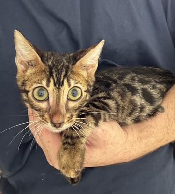 4 month old Bengal kitten available, friendly, beautiful big Rosetts litter trained $800. Last pictu...