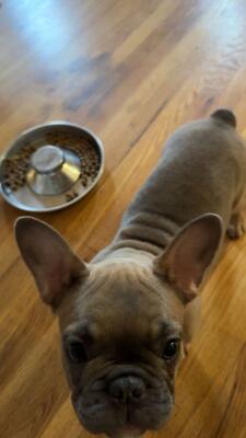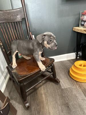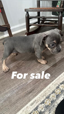 We have Athena we have a tri coat mix between a American bully and a French bull dog she’s grey ...