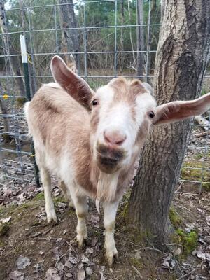 About 2 1/2 years old. Has not been bred before. Knows the milk stand for treats and hooves. Mid s...