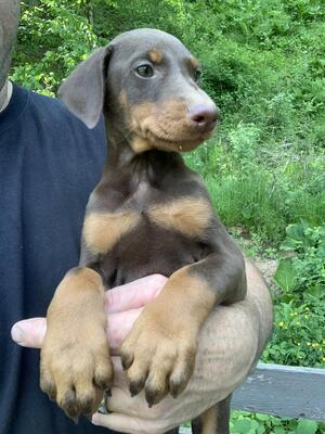 Red/Rust Female pup available, AKC Champion bloodlines 6&8 week shots done. Ears get cropped next we...