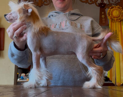 diamond is female she will be standard she is lilac tri Merle she is very vocal and loves to show it...