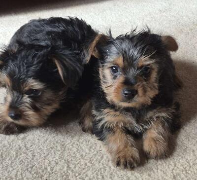 Yorkshire terrier puppies. Male and female available. 8 weeks old they are up to date with shots/dew...