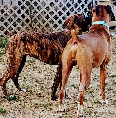 6 boxer puppies born on 5/24/25. There are 3 male and 3 female. Father is purebred fawn boxer and mo...