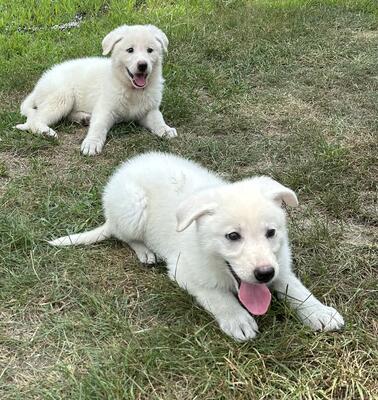 We have 2 pups remaining from a litter of 8. There are 1 girl and 1 boy. Pups are grey with white ma...