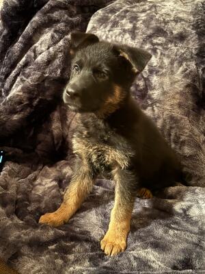 Black and red German Shepherd puppy. Male. 10 weeks old. First vaccines and de-wormed. Well sociali...