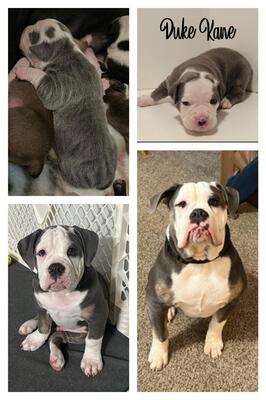 Our Kennel is Green Sea Oldies and we have a Beautiful Blue Trindle Olde English Bulldogge available...