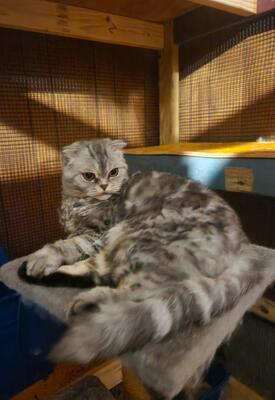 Sweet selkirk rex fold cross looking for good home she's about 2 years old good with other cats easy...
