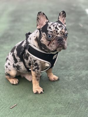 Meet our 15-month-old tri-color Merle French Bulldog, a compact and energetic stud ready to bring ex...