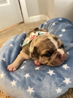 Male 16 week old French bulldog Up to date on all shots AKC registrated Fawn and Merle with blue...