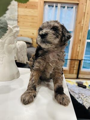 7 week old Soft coated Wheaten terrier and Poodle. They have their first set of shots and will weigh...