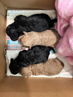 7 week old Soft coated Wheaten terrier and Poodle. They have their first set of shots and will weigh...