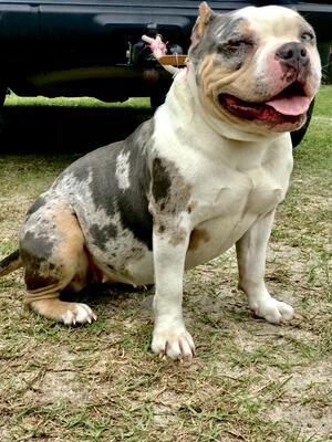 3 year old Blue Tri Merle American Bully. Great with kids and other animals. Only one litter of 2 pu...