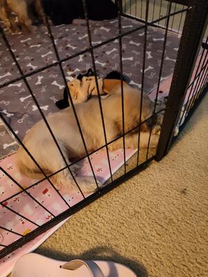 Just under 1 year old female intact. She is a little on the skittish side and is not getting along t...