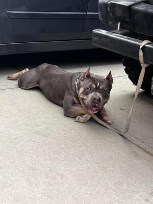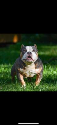 2 year old Male American bully. Blue tri color. Ukc registered. Does well with other dogs. Been ra...
