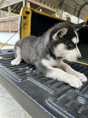 Hello, My Siberian Husky had 4 beautiful puppies 1 Male (black/grey) 3 Female (2 black/grey) (1 b...