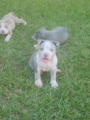 I have three abkc registeredAmerican bully left two females one male the male is the blue and white ...